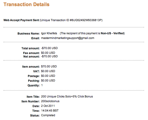 3. I purchased a solo ad from Igor. I paid $80 dollars. I received no communication from him even after emailing him 3 times. I have today left a comment on his facebook page and will wait to see if he answers this. At the moment I am a very unhappy customer.